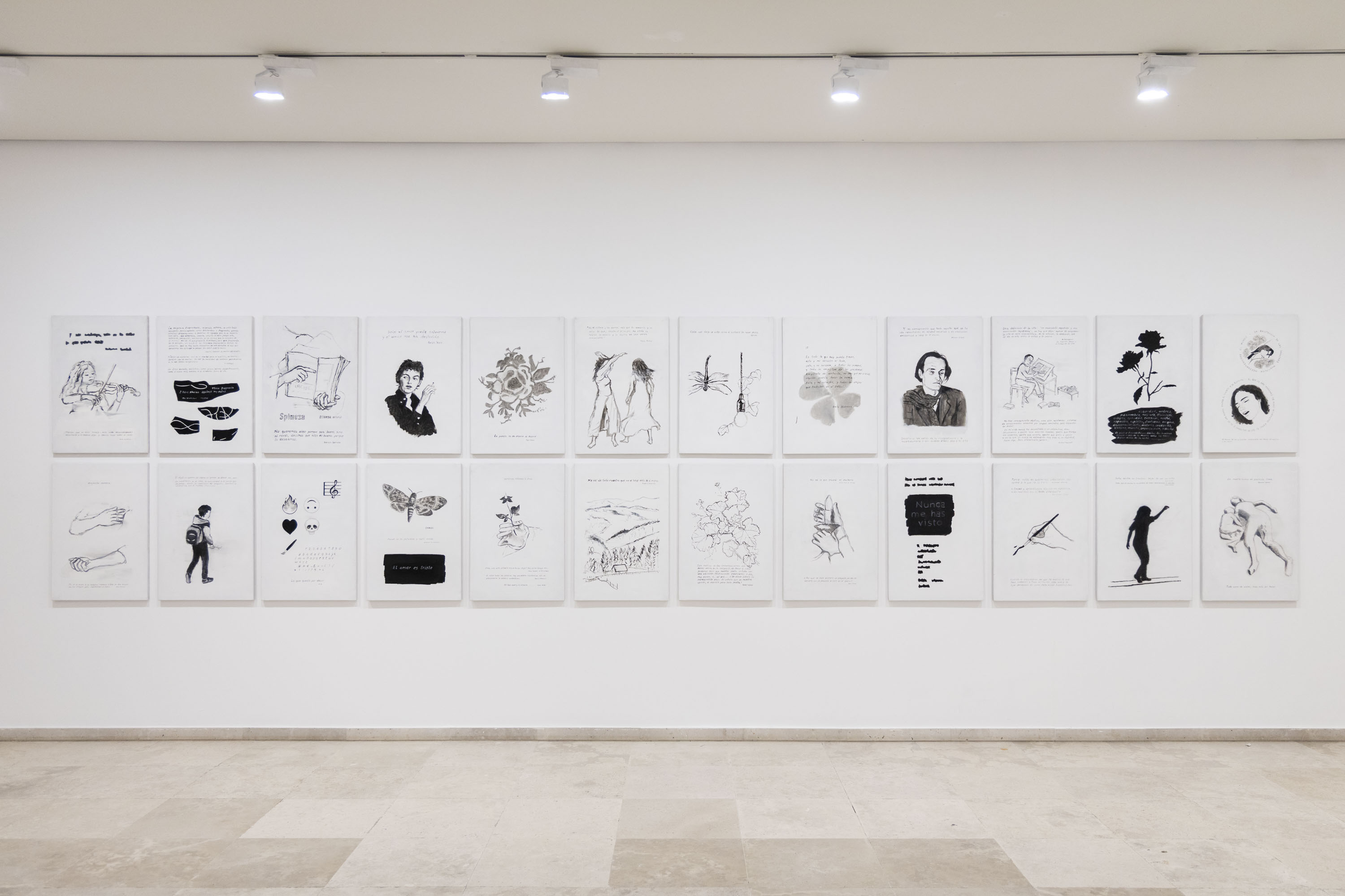 Del mismo modo, se presta especial atención al interés del artista por los textos como imagen y de las imágenes como texto. La inclusión constante de citas junto a escenas pintadas, dibujadas o fotografiadas convierte estos mensajes en protagonistas de una acción procesada por las lecturas y el conocimiento, y ofrecida, como un elixir, al público que los lea y observe.