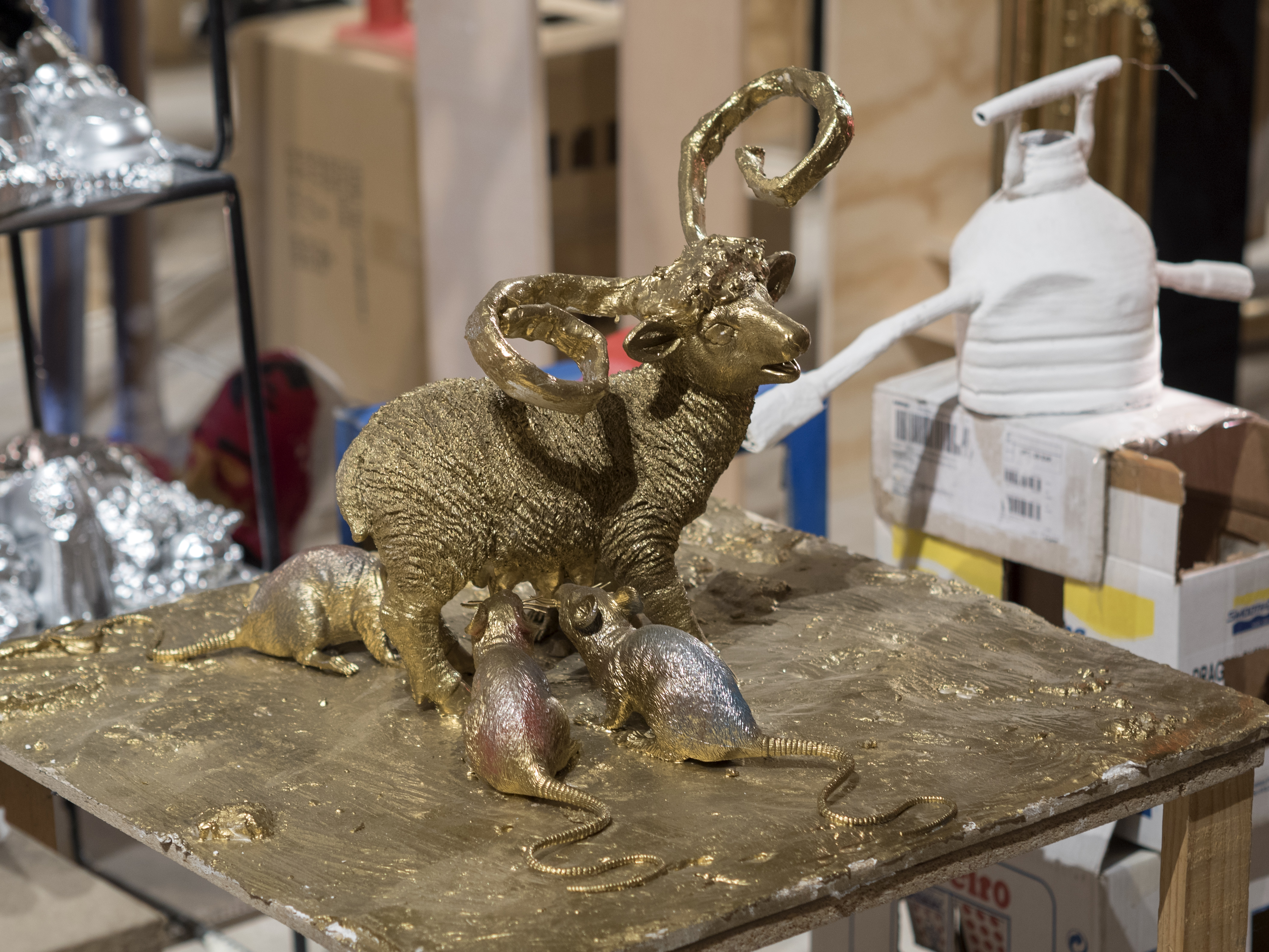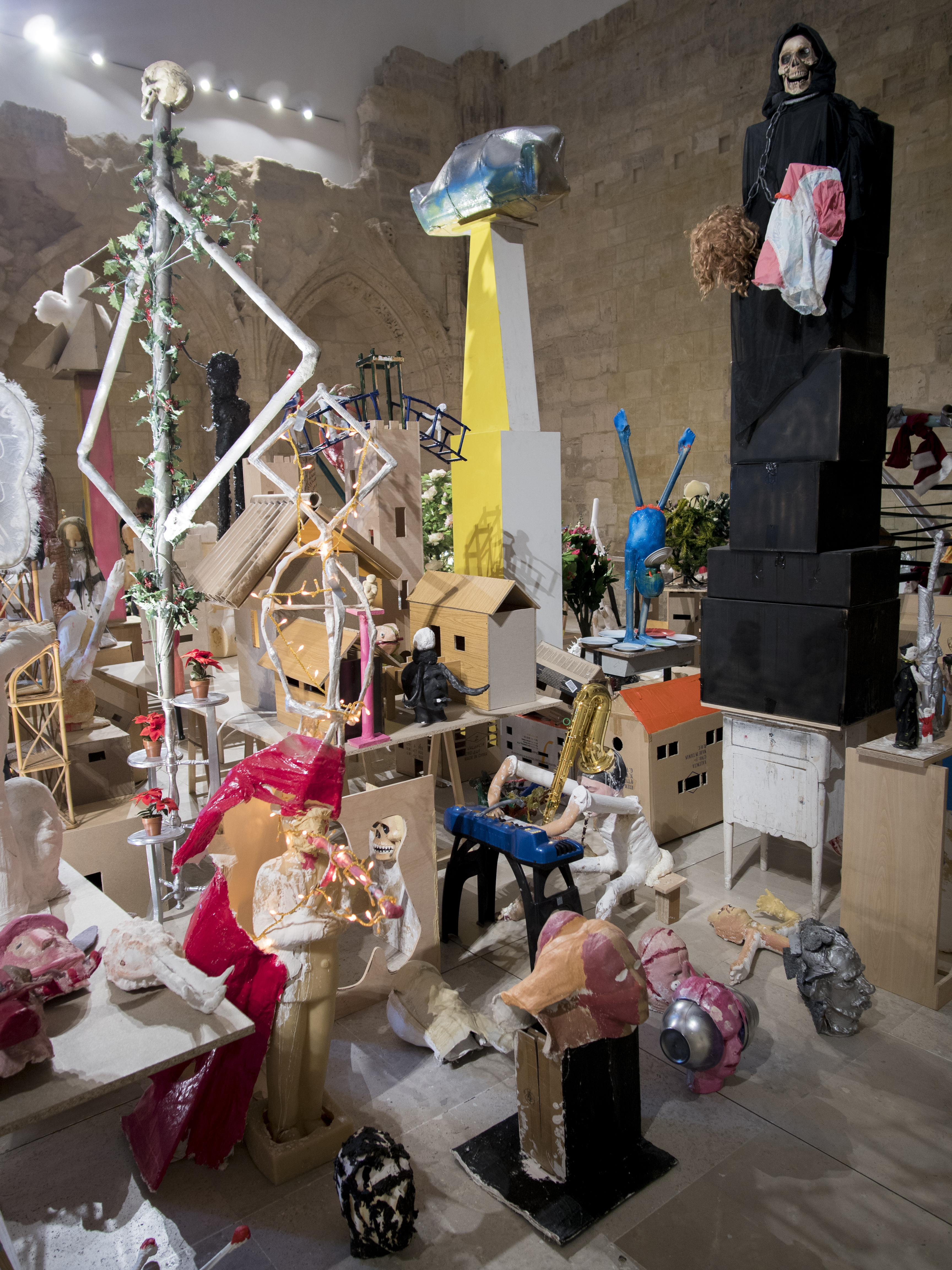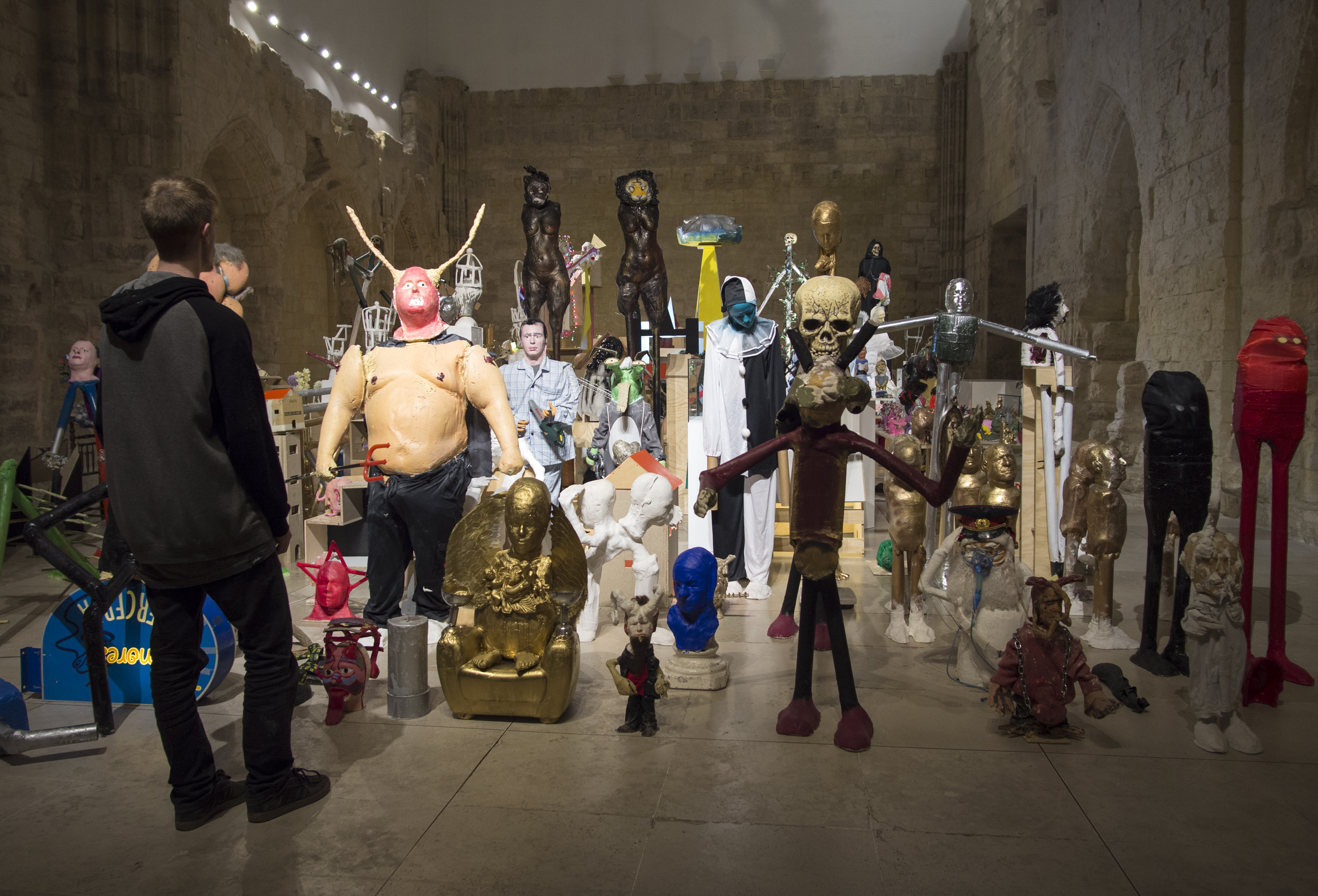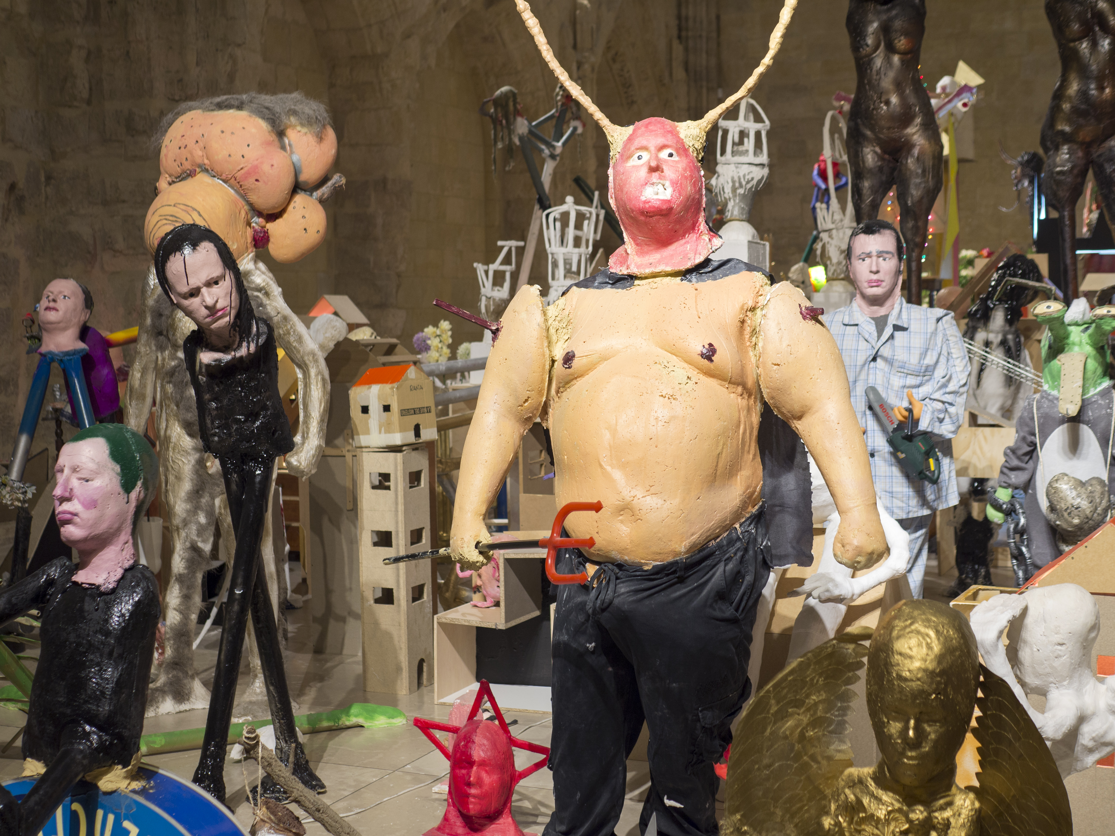 Esta instalación se compone de unas 500 piezas de la serie "Fall of the Idols", cuyo proceso de realización se basa, en su primera fase, en la documentación fotográfica realizada por el propio artista en museos de arte, de antropología, de historia, iglesias católicas, monumentos públicos, templos de distintas religiones… La documentación comprende desde máscaras rituales, deidades precolombinas o dioses del panteón clásico hasta esculturas barrocas, e incluso piezas contemporáneas emblemáticas. Objetos que de una forma u otra han sido venerados o considerados sagrados, no siempre necesariamente en el aspecto religioso, más bien con una intención de propaganda espiritual, política o ideológica, para una sociedad o al menos un grupo de personas. En la siguiente fase, en su taller, el artista invitó a personas no relacionadas con el arte a colaborar con él a realizar, basándose en las fotografías documentales, sus propias versiones de estos objetos: en tres dimensiones, con un carácter escultórico y una libertad de representación absoluta. Siempre utilizando los elementos de material sobrante en el estudio y explorando la línea borrosa que separa las distintas disciplinas. El resultado son unas piezas crudas, de una cierta violencia, que muestran rabia y humor al mismo tiempo.