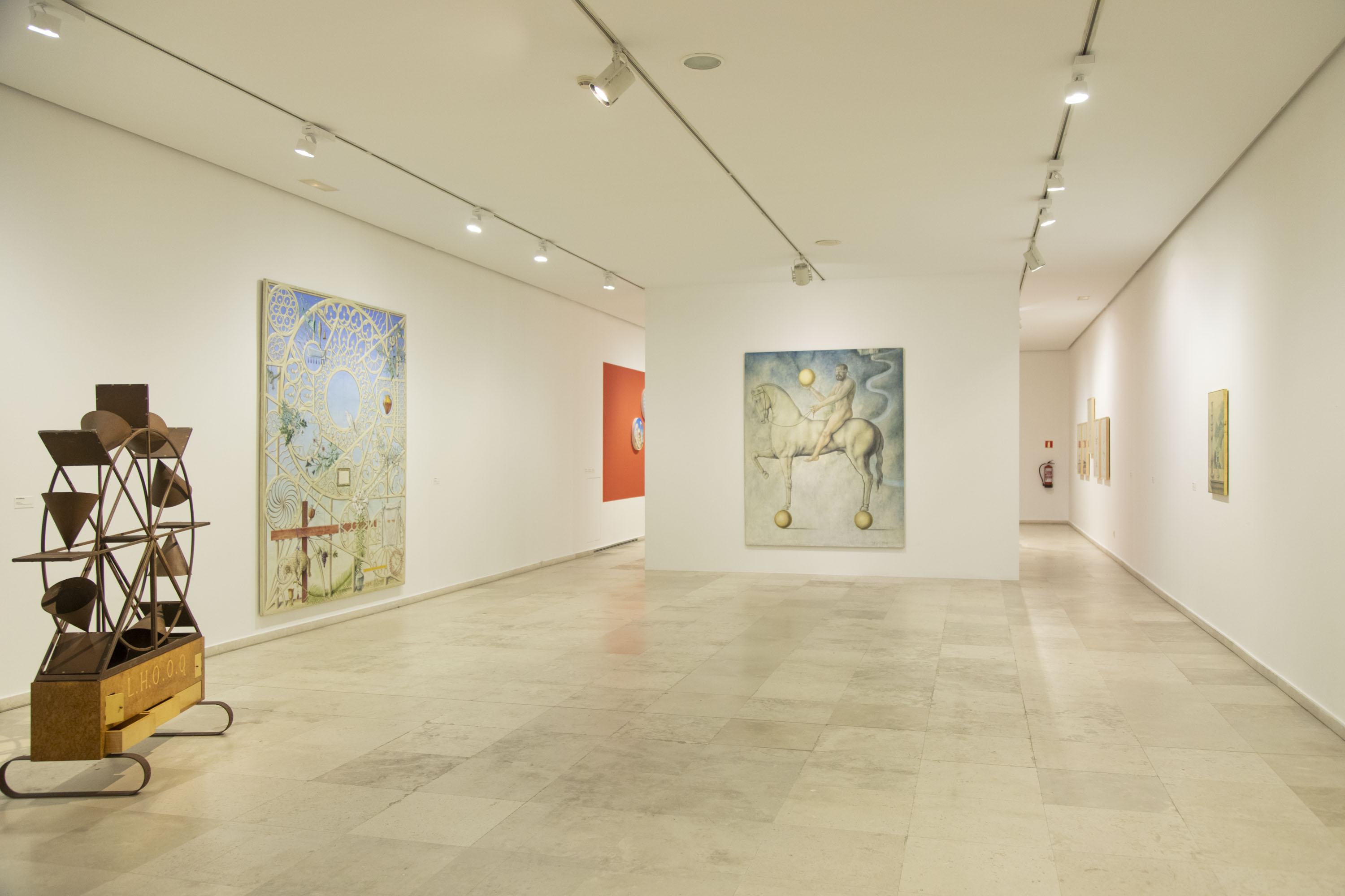 El recorrido de la exposición se articula pues en dos grandes bloques que permitirán al espectador acercarse de manera organizada al complejo y sugerente universo de Pérez Villalta, al tiempo que se le ofrece la oportunidad de profundizar en el significado de estas dos obras señeras a través del cuantioso conjunto de trabajos reunidos en torno a ellas. Las obras invitadas provienen fundamentalmente del conjunto depositado por el artista en el Centro Andaluz de Arte Contemporáneo de Sevilla. Del estudio del propio Pérez Villalta, asà como del Museo Nacional Centro de Arte Reina SofÃa de Madrid, han llegado el resto de obras expuestas, hasta alcanzar casi la centena, entre las que contamos con un buen número de ejemplos de absoluta referencia en la producción del artista.