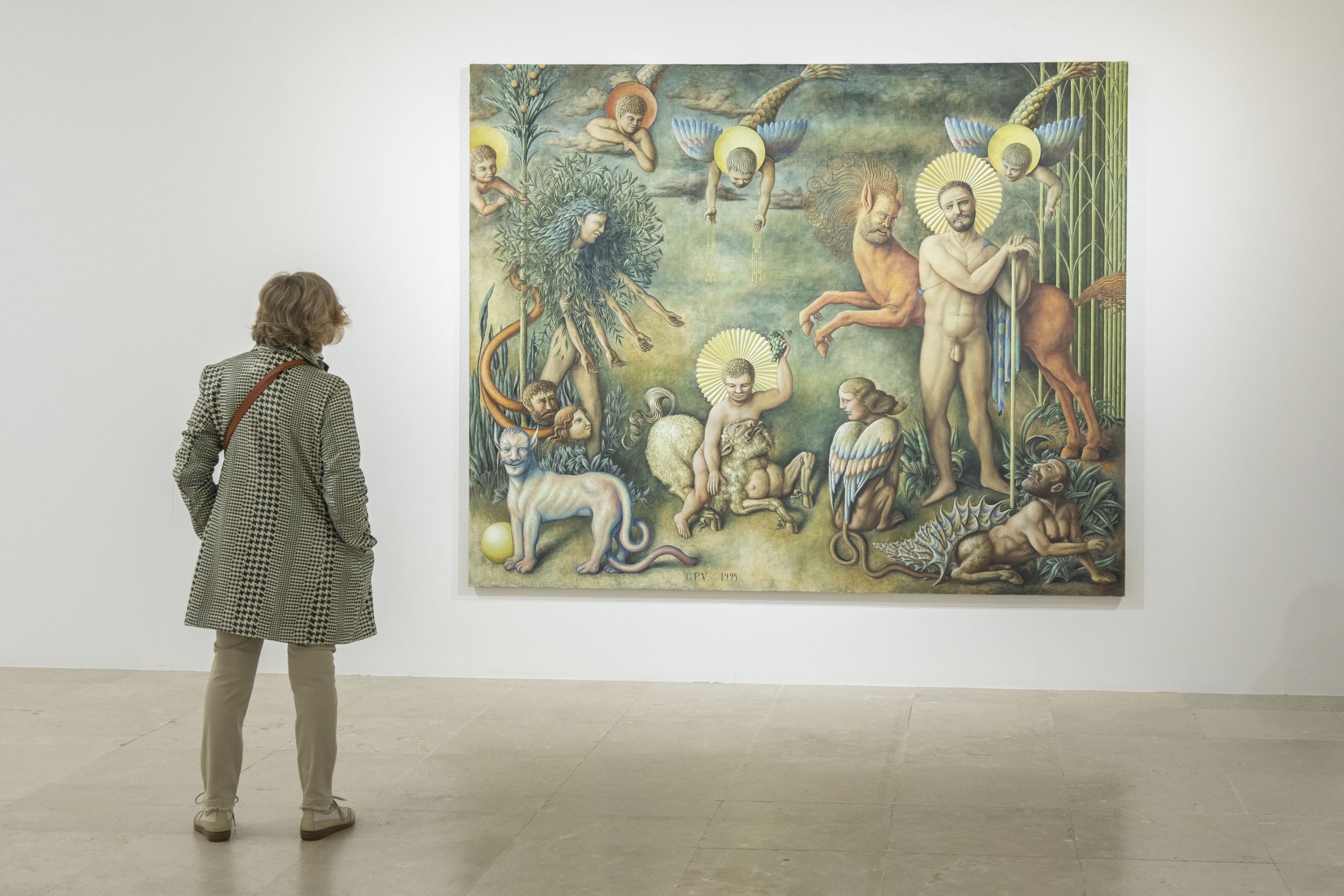 The Contemporary Art Collection Association houses, at the Museo Patio Herreriano, two significant paintings by Pérez Villalta that are highly representative of his interests and manner of working at the time of their creation: Character slaying a dragon (1977) and The Old Age of Giants (1986). Based on these two paintings, the curator of the exhibition, Óscar Alonso Molina, has devised an exhibition divided into two distinct areas, Rooms 6 and 7 on the third floor, each of them presided over by two different pieces.