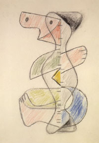 Lápiz negro y lápices color sobre papel