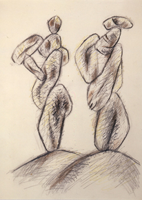 Lápiz negro y lápices color sobre papel