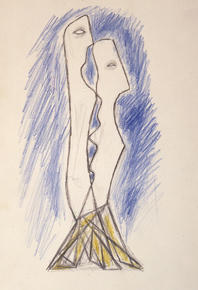 Lápiz negro y lápices color sobre papel