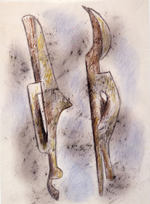 Lápiz, lápices color, cera y aguada sobre papel