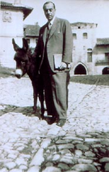 · 1942-44: Su primera exposición individual tras la guerra tiene lugar en la Galería Argos de Barcelona, donde muestra las cabezas de La Comedia Humana, la Tauromaquia y varios dibujos. En 1943 trabaja en la realización de unas esculturas móviles para la fachada del Teatro Albéniz que representan las diversas provincias. Su participación en el I Salón de los Once (Galería Biosca, Madrid), apoya la labor de Eugenio d'Ors y su Academia Breve de Crítica del Arte, en su intento de dotar de nuevos aires al panorama artístico madrileño. Por otro lado, sus necesidades económicas le hacen aceptar obras de encargo como el San Francisco para la Escuela de Ingenieros de Montes y parte de los bajorrelieves de la columna de La Rábida, dedicada al Descubrimiento. |